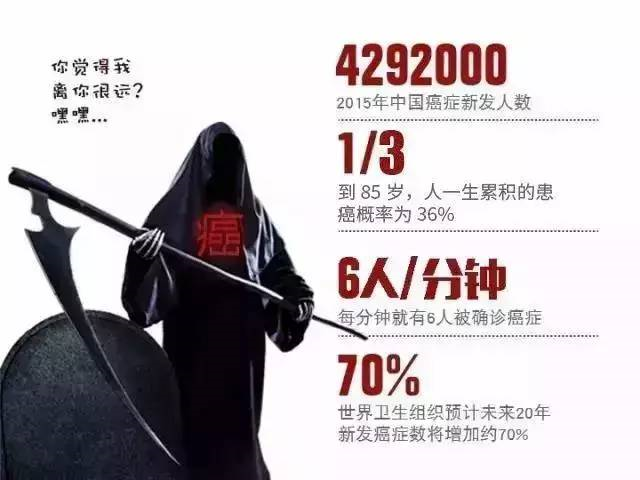 癌癥的可怕以及癌癥的高發(fā),大家都知道,我國(guó)每年新增患癌的人數(shù)有400多萬(wàn),死亡350萬(wàn),相當(dāng)于每分鐘有6人被確診患癌。更有甚者,近20年來(lái)癌癥呈現(xiàn)年輕化及發(fā)病率和死亡率“三線”走高的趨勢(shì)。