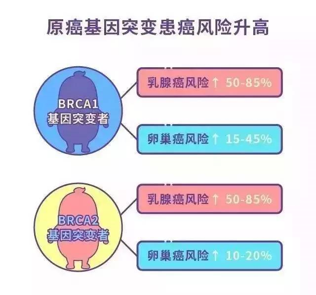 當(dāng)人有BRCA1基因突變時(shí),患乳腺癌和卵巢癌的風(fēng)險(xiǎn)分別是50%~85%和15%~45%。